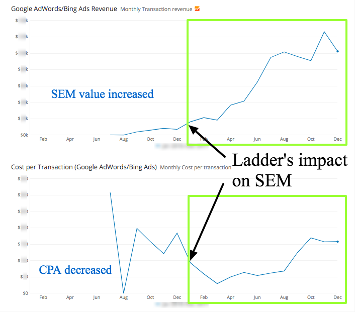 这个电子商务品牌企业的 SEM 营销活动有很多唾手可得的成果,但更重要的是,我们看到了主导其产品搜索意图的真正机会。起初,我们对他们的广告组、关键字出价和广告文案进行了经过增长验证的更新。最终将他们的 SEM 从几乎不存在转变为推动 20% 的年收入,其策略就是用户细分和谷歌购物活动。